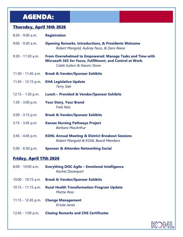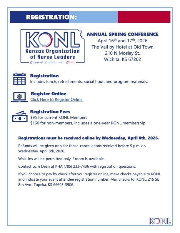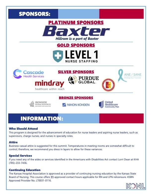 The Kansas Hospital Association is approved as a provider of continuing nursing education by the Kansas State Board of Nursing. KSBN Approved Provider No. LT0031-0116..